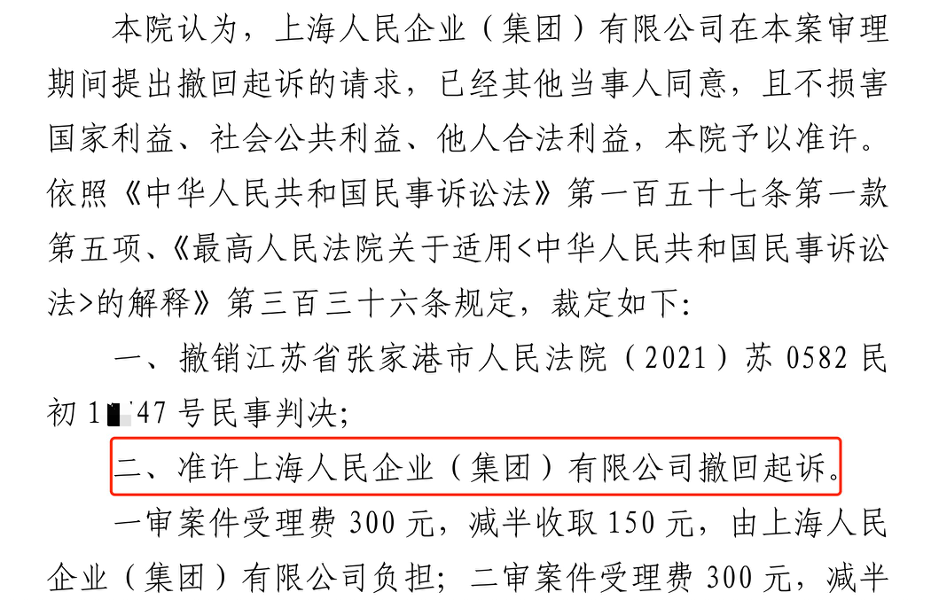 梧州胜诉佳讯 | 人民企业系列案苏州六案上海人民公司撤诉