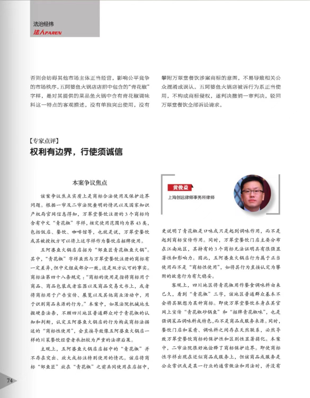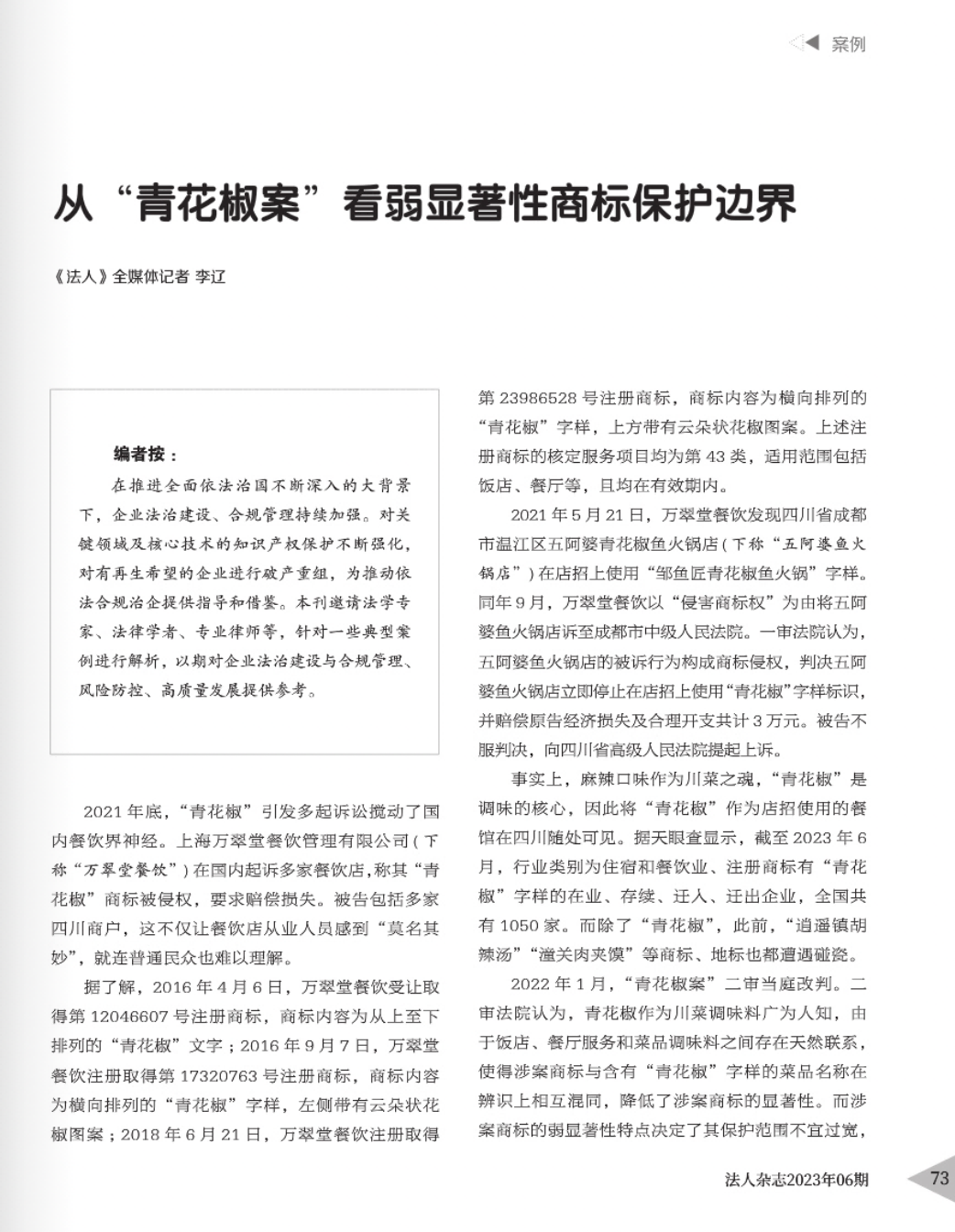梧州辉知简讯 | 辉知队黄俊益律师应“法治日报”旗下杂志邀请,就“青花椒”案发表专家点评