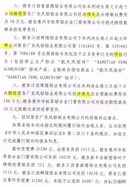 梧州凤铝系列维权案:诉辉煌公司等四被告,法院判赔250余万