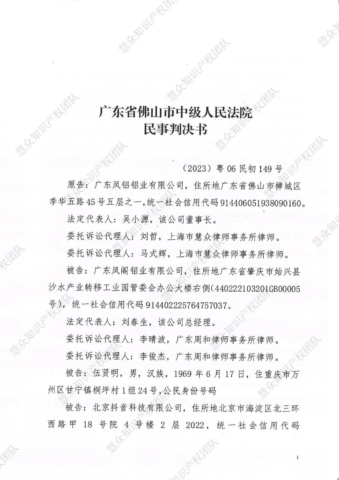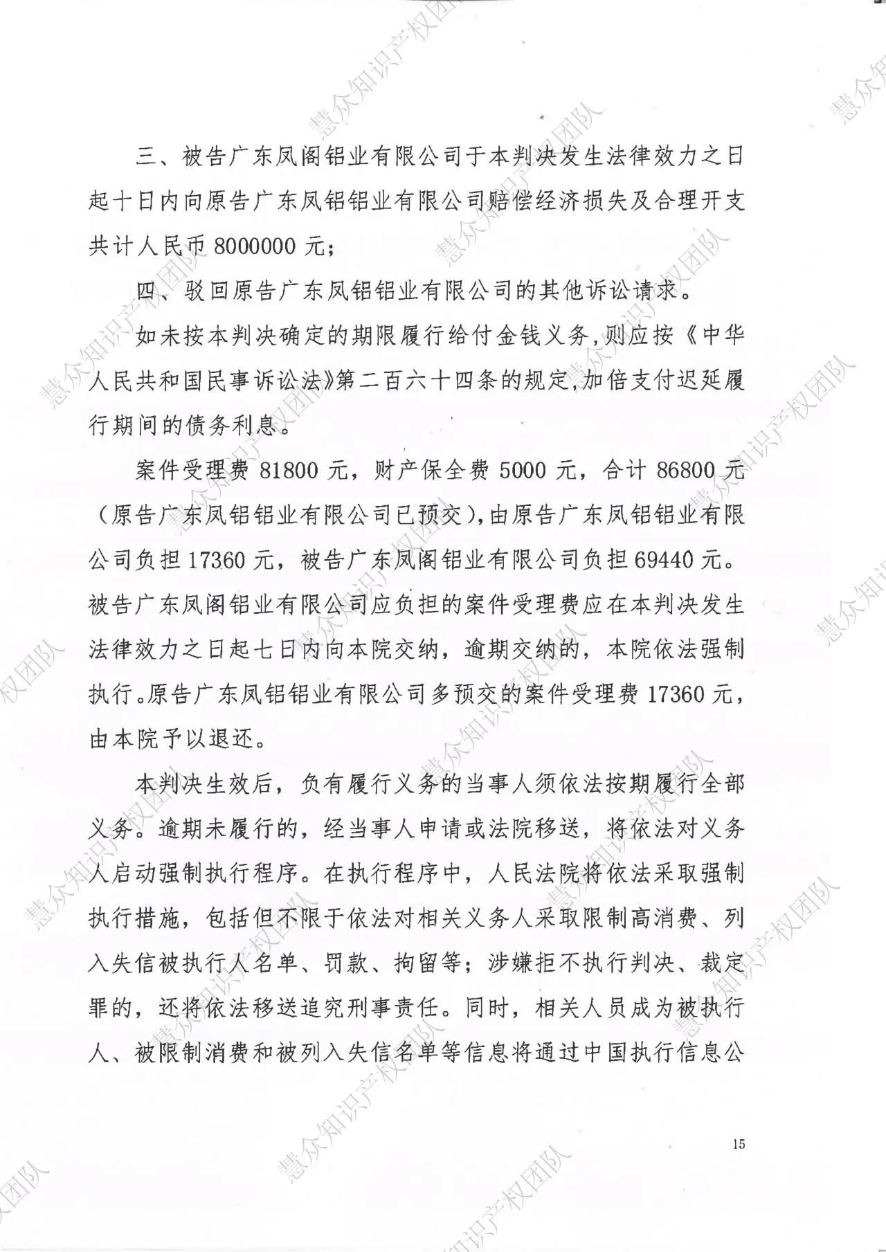 梧州判赔800万!辉知队代理“凤铝”商标维权案胜诉